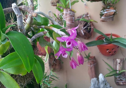 Ông Nguyễn Hoài Sơn, ở phường Vạn Phúc, quận Hà Đông có một mảnh đất rộng khoảng 100m2 chỉ dành trồng lan. Ông chia sẻ: “Trồng lan coi vậy chứ cũng bận rộn suốt ngày, hết chăm bón phân lại tưới tắm, xịt thuốc. Nhưng bù lại được nhìn những bông hoa khoe sắc là tôi thấy khỏe lại liền. Ngày nào không ra vườn là trong người lại bứt rứt không yên. Tôi gần như không bỏ phiên chợ hoa lan nào ở chợ cây Hà Đông. Gặp loài hoa nào quý mà vườn chưa có thì tôi mua, còn không thì đi ngắm hoa. Bao nhiêu năm nay nó trở thành thói quen không thể bỏ”.