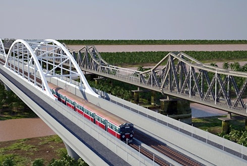 Mô hình tuyến đường sắt đô thị Yên Viên - Ngọc Hồi chạy qua sông Hồng.