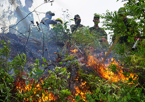 Các lực lượng phải chia thành nhiều nhóm để tiếp cận đám cháy, dùng nước dập lửa, dùng máy thổi làm sạch thực bì để ngăn lửa cháy lan. Sau hơn hai tiếng, ngọn lửa cơ bản được khống chế.