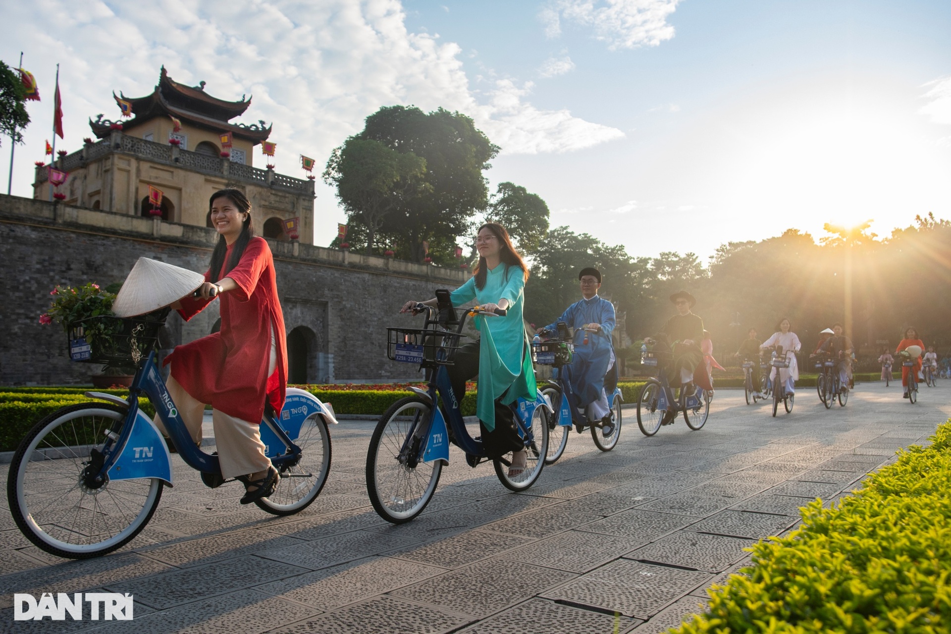 Hơn 100 người mặc áo dài, đạp xe diễu hành qua các di sản Hà Nội