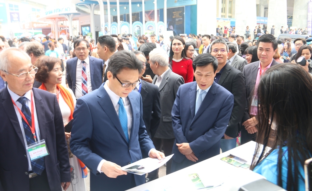 | Phó thủ tướng Chính phủ Vũ Đức Đam, Trưởng ban Chỉ đạo Nhà nước về du lịch cùng các đại biểu tham quan các gian hàng tại VITM 2019 |