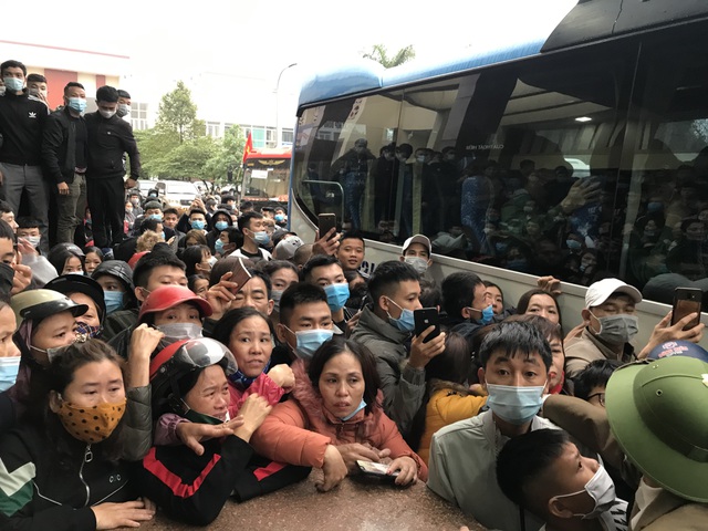 | Người thân chen chân tiễn các tân binh. |