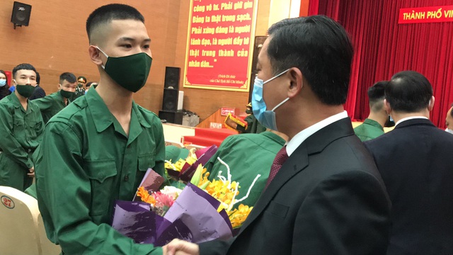 | Những công dân TP Vinh lên đường nhập ngũ năm 2021. |