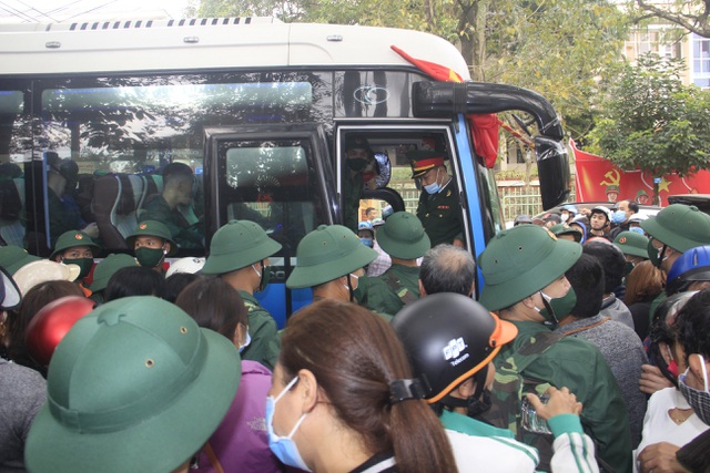 | Giây phút bịn rịn trước lúc các chiến sĩ trẻ lên đường. |