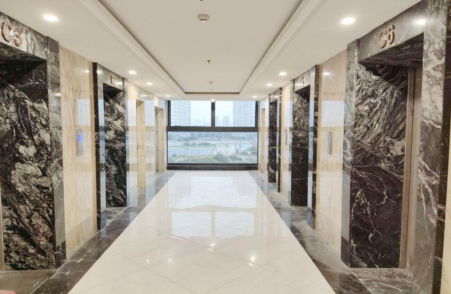 | Hệ thống thang máy hiện đại và khu vực sảnh các tầng đã sẵn sàng hoạt động |