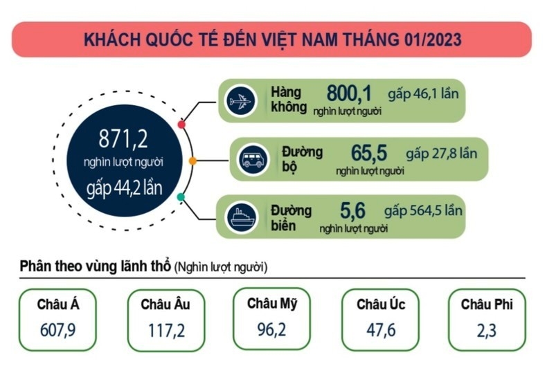 Hơn 871 nghìn lượt khách quốc tế đến Việt Nam trong tháng 1
