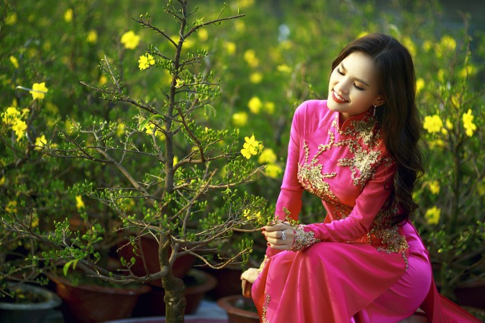 Hot girl Phi Huyền Trang đẹp dịu dàng trong tà áo dài