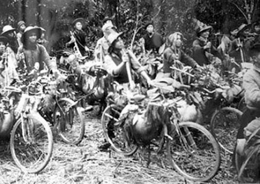 | Chiếc xe đạp thồ của ông Trịnh Ngọc, dân công thị xã Thanh Hóa đã chở được 345,5kg, đạt kỷ lục chở nặng nhất bằng xe đạp thồ trong chiến dịch Điện Biên Phủ. |