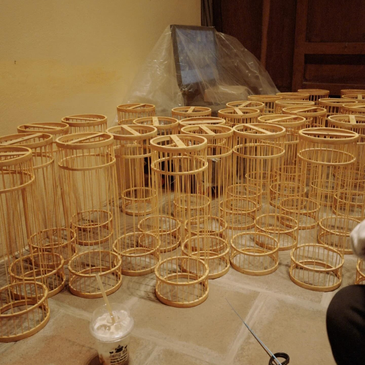 | Các khâu hoàn thành đèn lồng tại đền Quan Đế. |
