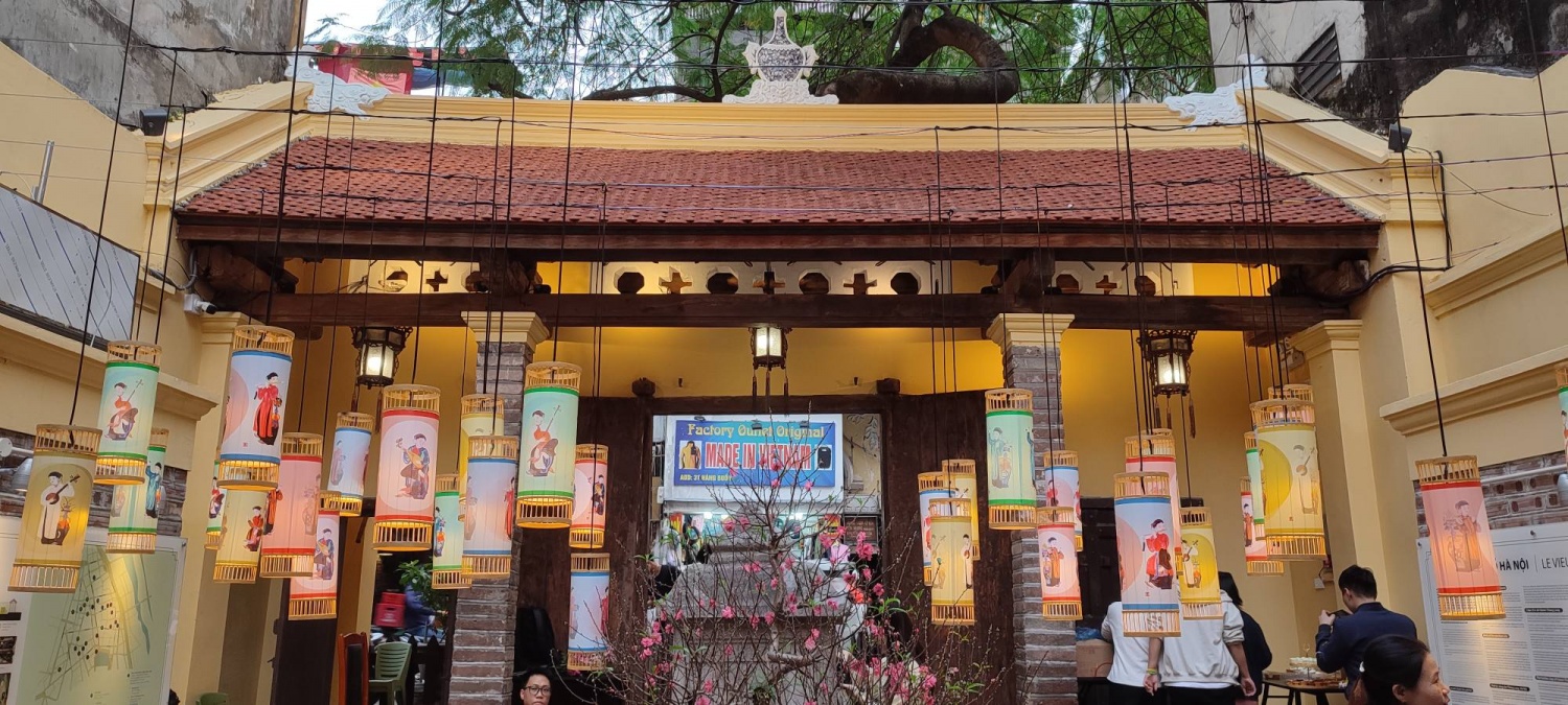 Ngay từ cổng vào, du khách đã có thể cảm nhận bầu không khí xuân lan tỏa trong từng chi tiết trang trí. Những chiếc lồng đèn nhiều kích cỡ, sắc màu đỏ, vàng, cam, xanh được sắp đặt khéo léo dọc lối đi, treo cao trên mái hiên, đan xen giữa những mảng tường rêu phong và mái ngói cổ. Ánh sáng ấm áp của đèn lồng phản chiếu lên các cấu kiện gỗ chạm khắc tinh xảo, tạo nên hiệu ứng thị giác vừa lung linh, vừa trầm mặc.