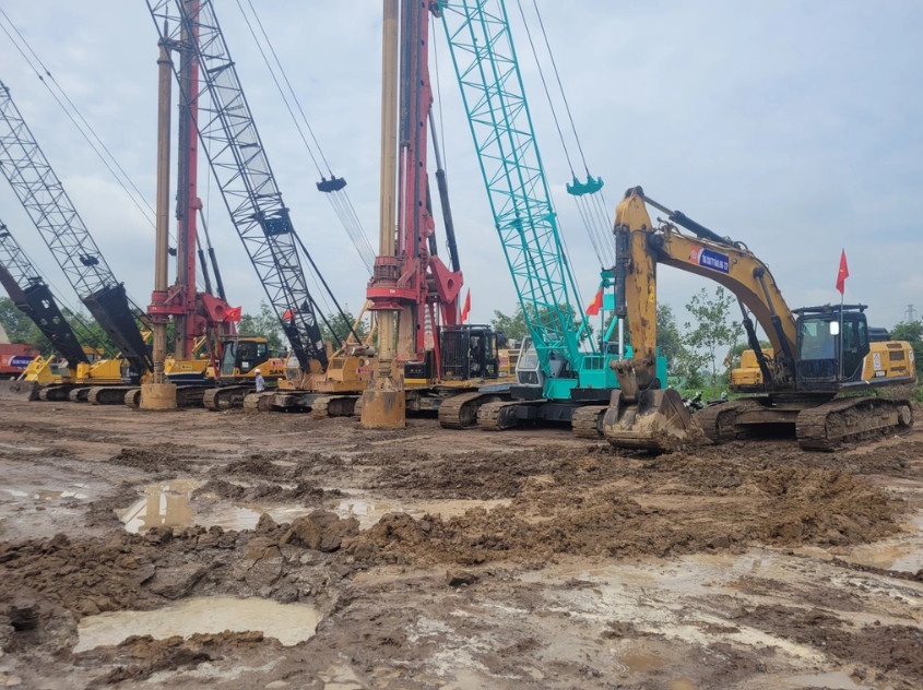 | Các máy móc, thiết bị thi công tại lễ khởi công sáng 14/7 (Ảnh: Hoàng Bình). |
