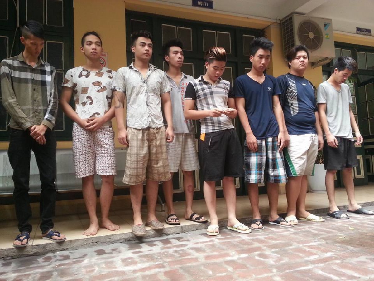 Các đối tượng bị bắt giữ gồm: Nguyễn Bá Thanh (18 tuổi, ở quận Ba Đình, TP Hà Nội); Bùi Minh Quang (19 tuổi, ở quận Ba Đình); Nguyễn Xuân Mạnh (18 tuổi, ở quận Đống Đa, TP Hà Nội); Nguyễn Hoành Thái Bảo (19 tuổi, ở quận Hai Bà Trưng, TP Hà Nội); Phạm Phi Long (18 tuổi, ở quận Tây Hồ, TP Hà Nội); Lê Xuân Cường (21 tuổi, ở quận Đống Đa); Bùi Tuấn Anh (22 tuổi, ở quận Ba Đình) và Trần Minh Hiếu (17 tuổi, ở quận Thanh Xuân, TP Hà Nội).