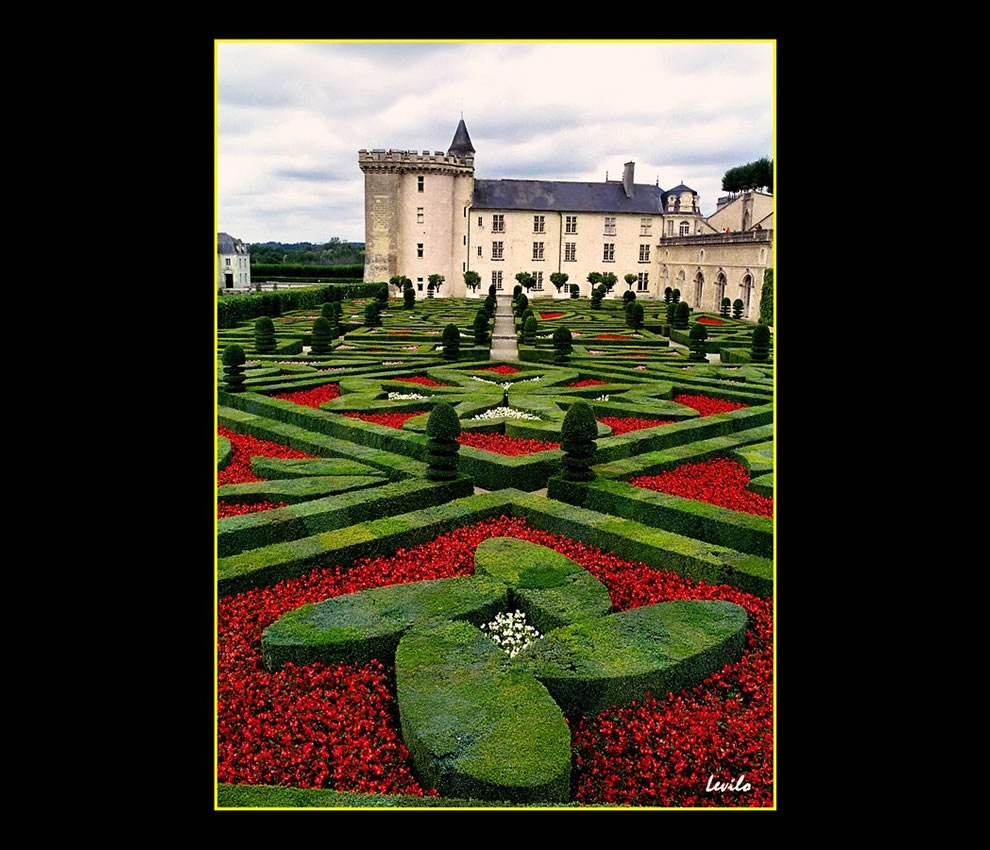 Khu vườn tình yêu nằm trong tổng thể thiết kế của Chateau de Villandry – một tòa lâu đài đẹp như tranh vẽ theo phong cách Phục hưng, nằm trên bờ sông nhánh của sông Loire (sông Cher và Indre).