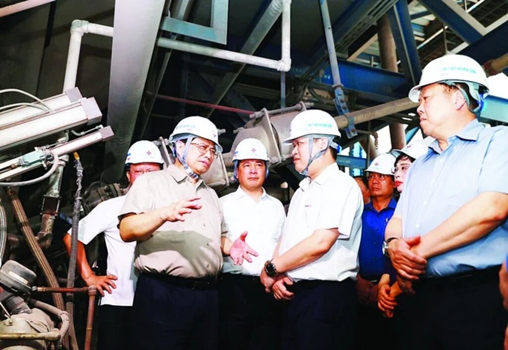 | Chủ tịch Nguyễn Hoàng Anh cùng đoàn công tác của Ủy ban Quản lý vốn nhà nước tại doanh nghiệp thăm và kiểm tra công tác sản xuất tại Nhà máy Alumin Tân Rai |