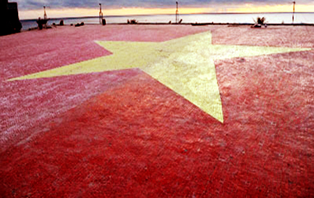 Quốc kỳ Việt Nam bằng gốm thực hiện trên mái tòa nhà hội trường của đảo Trường Sa Lớn, do họa sĩ Nguyễn Thu Thủy lên ý tưởng và cùng ê kíp những người thợ của công ty chị thực hiện. Từ ngày 24/12/2011 đến 3/1/2012, họa sĩ Thu Thủy và đồng nghiệp đã ra thăm, khảo sát vị trí làm cờ ở đảo Trường Sa Lớn.