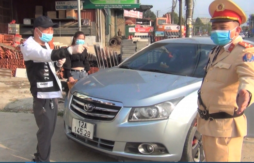 | Cảnh sát giao thông đo nồng độ cồn qua khí thở của người tham gia giao thông. |
