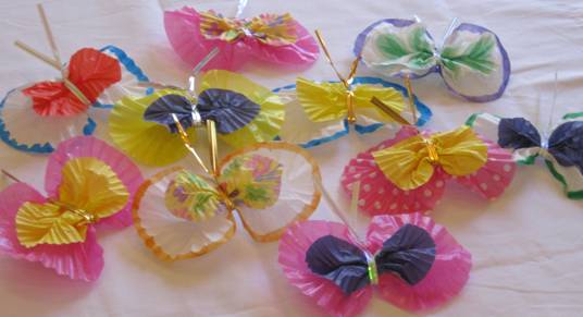 Giấy lót cupcake kết hợp với ống hút tạo thành dây hoa đẹp mắt.