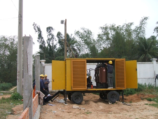 Máy biến áp di động phục vụ cấp điện cho khách hàng.