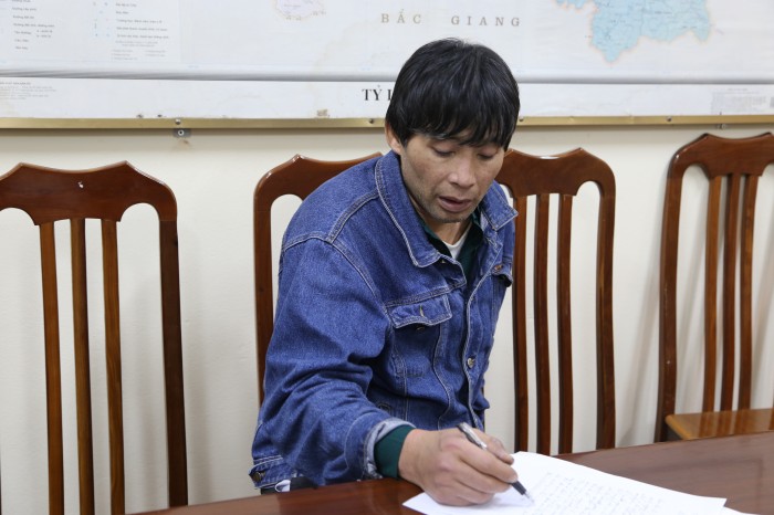 | Bùi Xuân Sơn tại cơ quan Công an |