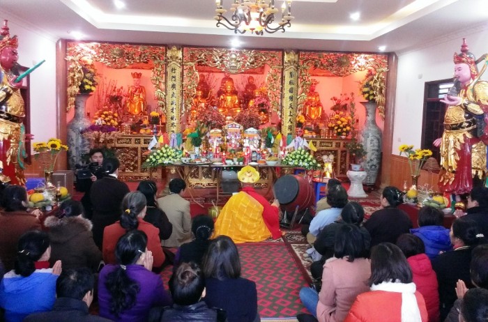 | Chiều ngày 24/2, sư thầy Thích Quảng Vượng được mời về làm lễ cúng sao giải hạn cho cư dân, chùa Nam Xa Tự càng trở nên đông đúc. |