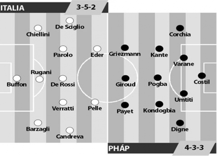 2 bàn trở lên: 10/13 trận gần đây của Italia, 14/16 trận vừa qua của Pháp và 5/6 lần đối đầu gần nhất giữa đôi bên đều có 2 bàn trở lên. Tin kịch bản này sẽ lặp lại.