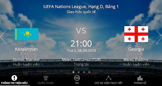 Trận đấu giữa Kazakhstan vs Georgia diễn ra lúc 21h00 ngày 6/9 thuộc vòng bảng UEFA Nations League 2018/19.