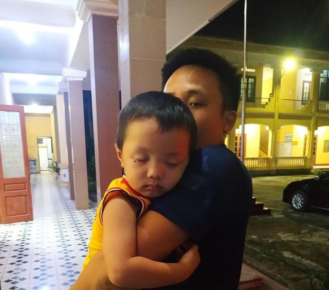 | Cháu Bảo được lực lượng chức năng bàn giao lại cho gia đình (Ảnh: Công an cung cấp). |