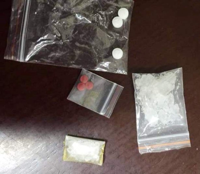 Qua kiểm tra, tổ công tác phát hiện 2 túi nilon nhỏ chứa tinh thể trắng nghi là ma túy đá và 1 túi nilon chứa 3 viên thuốc màu trắng đục, 1 túi nilon chứa 3 viên thuốc màu đỏ hồng nghi là ma tuý tổng hợp.
