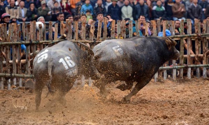 | Các màn chọi trâu hấp dẫn ngay từ những cặp đấu đầu tiên. |