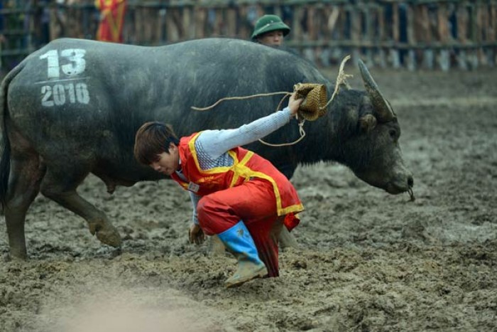 | Mỗi khi có trâu thua cuộc, màn rượt đuổi diễn ra sau đấy cũng khá căng thẳng. Người huấn luyện trâu thường phải mất tới vài phút mới tách được hai trâu ra. |