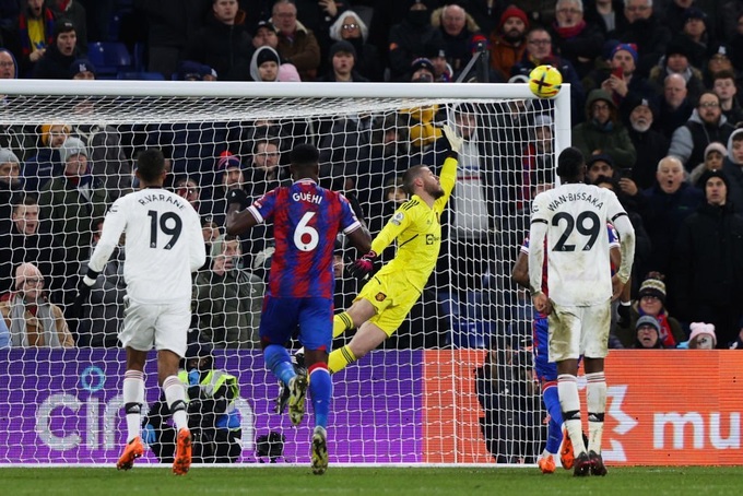 Nỗ lực không biết mệt mỏi của đội chủ nhà được đền đáp ở phút bù giờ thứ nhất. Olise đứng trước quả đá phạt ở bên phải, cách khung thành Man Utd chừng 23m. Cầu thủ số 7 của Crystal Palace thực hiện cú sút phạt hiểm hóc, đưa bóng đi vào cầu môn dưới mép xà ngang, gần điểm nối xà ngang và cột dọc khiến De Gea không thể cản phá.