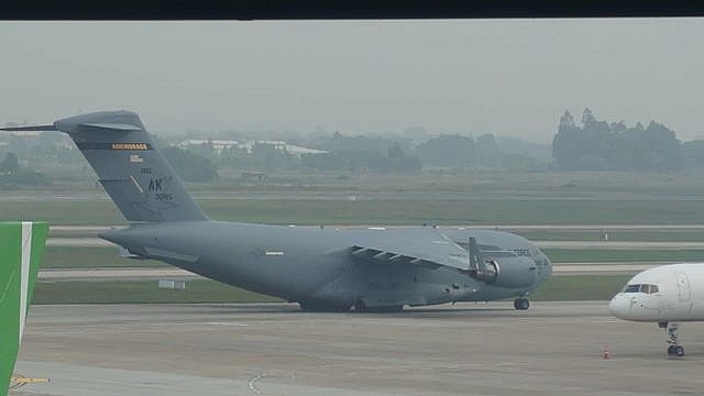 Máy bay vận tải hạng nặng C-17 của Mỹ tiếp tục đến Nội Bài