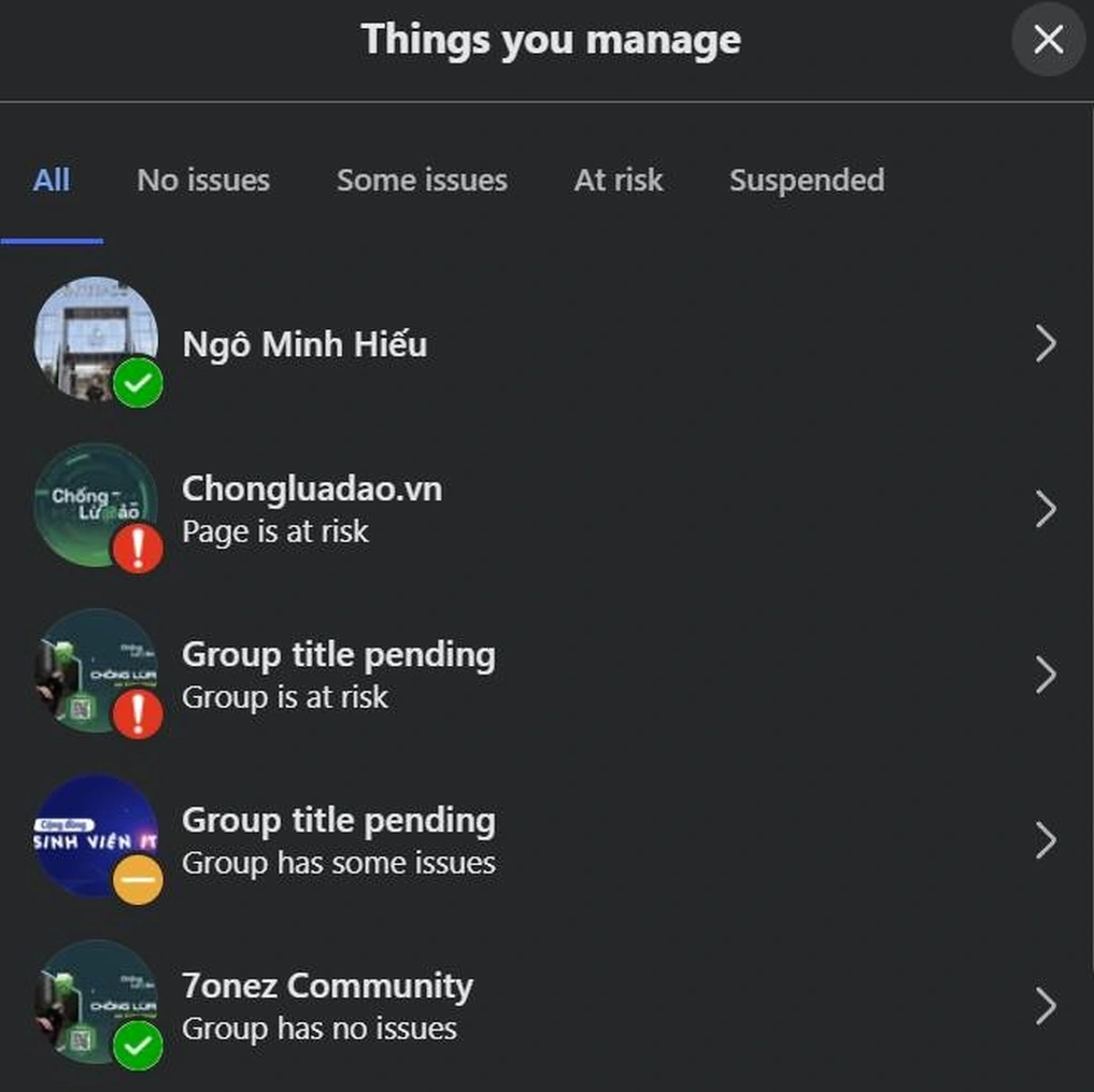 Chiều 24/6, hàng loạt hội nhóm Facebook tại Việt Nam bất ngờ nhận được thông báo "Chúng tôi đã đình chỉ nhóm của bạn". Vấn đề này được ghi nhận ở nhiều hội nhóm thuộc các lĩnh vực khác nhau, như mua bán, giải trí, công nghệ...