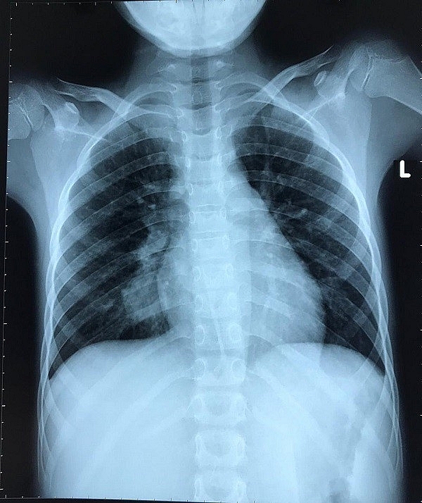 | Hình ảnh X quang phổi của bé trước khi phẫu thuật |