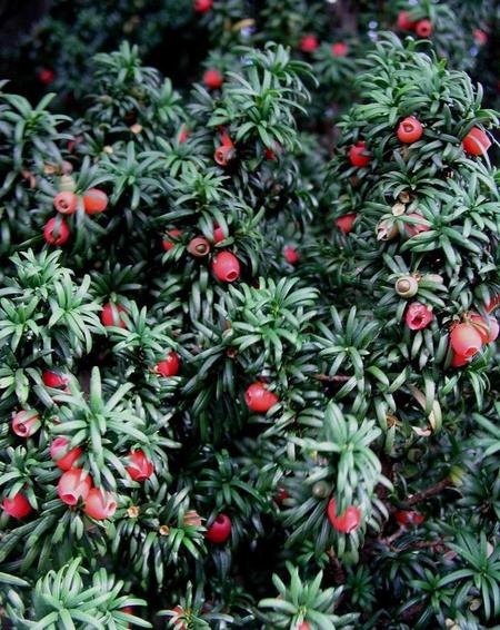 Cây thông đỏ hay Taxus baccata (“taxus” có nghĩa là độc) là loại cây bụi lớn thường thấy trong các khu rừng ở châu Âu, có lá xanh quanh năm. Trái cây mềm, màu đỏ chín mọng trông rất bắt mắt nhưng chứa hột màu nâu đen có độc tính rất mạnh, đến nay vẫn chưa có thuốc giải loại độc này.