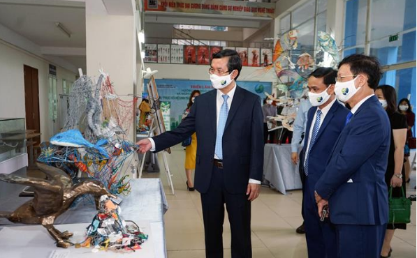| Các đại biểu tham quan triển lãm các tác phẩm nghệ thuật tuyên truyền bảo vệ môi trường của trường ĐHSP Nghệ thuật Trung ương |