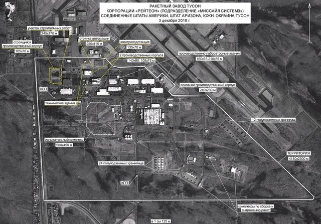 Bộ Quốc phòng Nga đã tung một tấm ảnh chụp từ vệ tinh nhà máy của nhà thầu quốc phòng Raytheon (Mỹ), cáo buộc rằng Washington đã chuẩn bị sản xuất tên lửa bị cấm theo INF từ 2 năm trước đây.