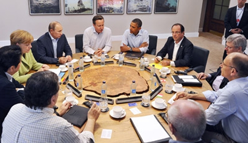 Tổng thống Nga Putin và các nhà lãnh đạo phương Tây trong một phiên thảo luận chung của Hội nghị G8 họp tại Bắc Ai Len