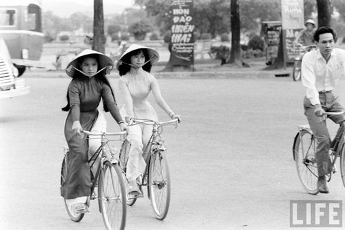 Dù đạp xe, áo dài vẫn mang lại vẻ nữ tính cho các thiếu nữ Hà Nội.