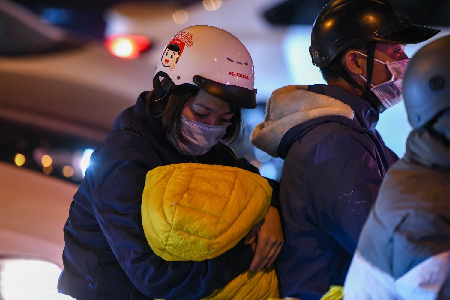 | Sau khi hoàn thành xong mọi thứ vào ngày cuối làm việc, nhiều người di chuyển bằng xe máy về quê để ngay trong tối 19/1. Trong ảnh, hai bạn trẻ đang trong hành trình 70km về quê ăn Tết ở hà Nam. |