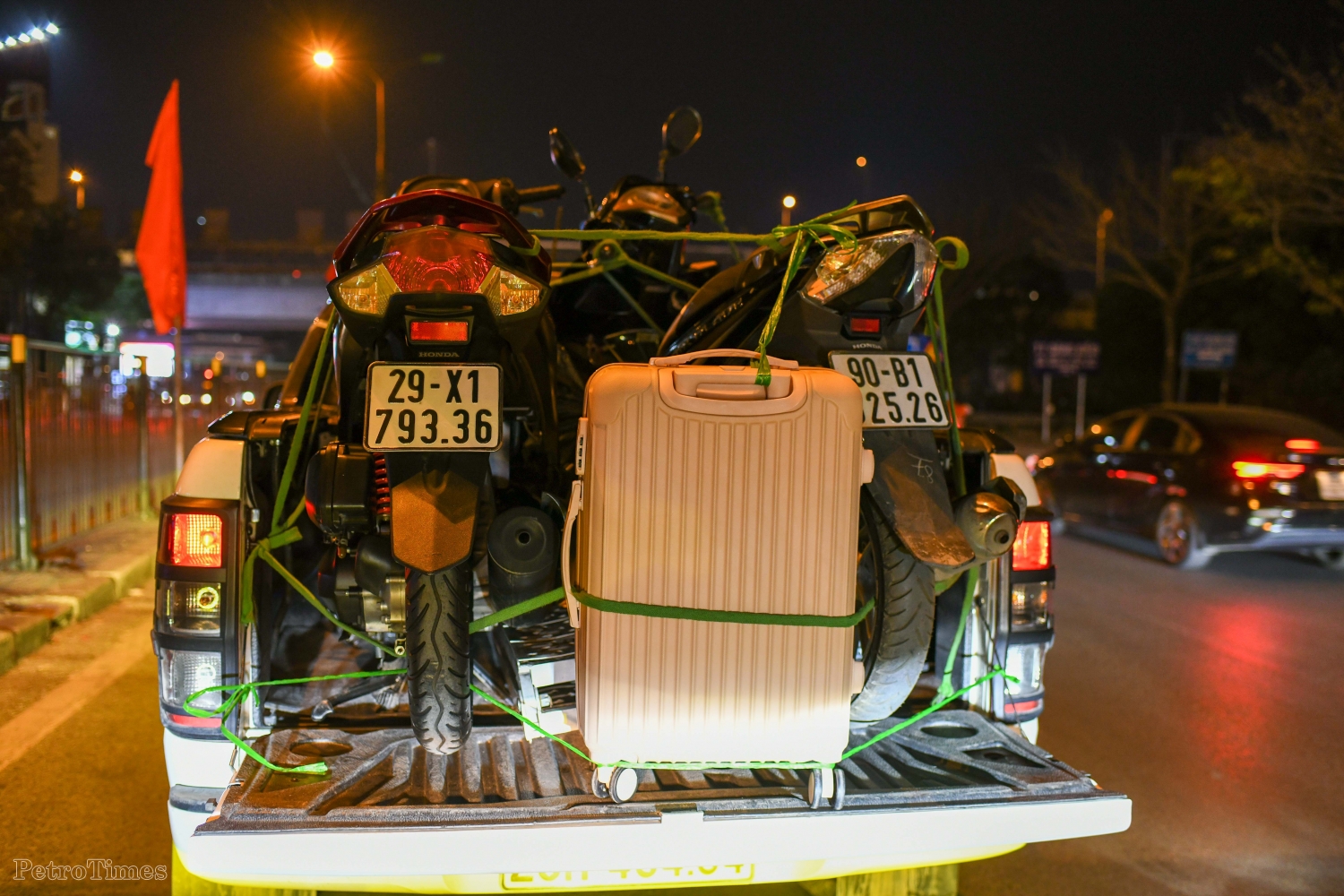 | Nhiều phương tiện rời khỏi Hà Nội với đồ đạc lỉnh kỉnh. |