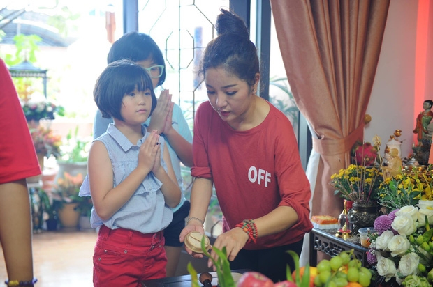 | Thúy Nga tất bất tự tay chuẩn bị mọi thứ và mời mọi người cùng đến dâng hương, trò chuyện trong ngày cúng Tổ nghề thiêng liêng |