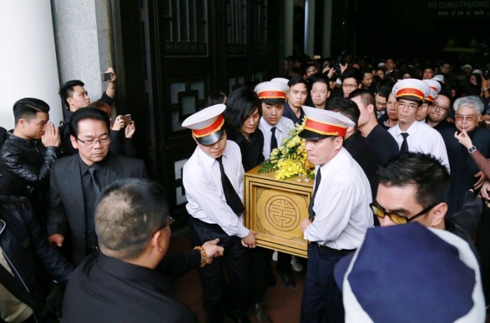 Từ sớm, các nghệ sĩ và đông đảo người hâm mộ đã có mặt tại Nhà tang lễ Bộ Quốc Phòng số 5 Trần Thánh Tông chờ viếng Trần Lập.