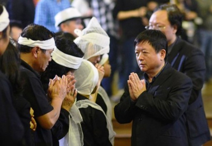 | Khi bước lên linh cữu chồng, nhìn mặt anh lần cuối, vợ anh gần như ngã quỵ và phải cầm lấy tay con gái. Người nhà dìu chị bước đi. |