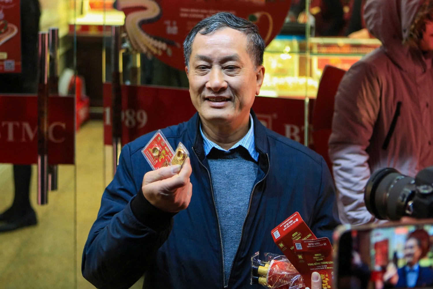 Ngay từ 4 giờ sáng ngày 7/2/2025, mùng 10 tháng Giêng - ngày vía Thần Tài, rất đông người dân đã có mặt ở các tiệm vàng trên phố Trần Nhân Tông (Hà Nội). Theo quan niệm dân gian thì vào ngày vía Thần Tài, người dân sẽ mua vàng để cầu mong may mắn cho năm mới. Đây cũng là một lý do để những người dân tích trữ vàng như một tài sản hoặc một khoản đầu tư lâu dài.