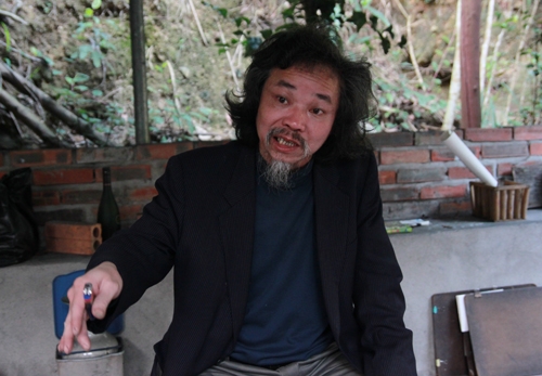 Tôi hình dung khu xưởng nhà nghệ nhân Tâm Nhâm phải đặt ở mặt đường để trưng bày vô số tác phẩm của ông. Nhưng sự thực là, tôi đã phải leo gần 200m mới lên tới được nhà ông. Nhà ông tọa lạc trên một sườn núi cả vài hécta. Ấy là ngôi nhà yên tĩnh, được bao bọc bởi một rừng cây, thoáng đãng như chốn ẩn dật của một cư sĩ. Trong sân, một người đàn ông râu tóc xồm xoàm, miệng rít thuốc, tay cầm chổi... ra đón tôi trong tiếng cười xuề xòa: “Vào đây, vào đây. Mấy ông em được giới thiệu hôm nọ, tớ quên đấy”. Thú thực, lần đầu tiếp xúc, người lạ sẽ nghĩ Tâm Nhâm hơi “khác người” ở cái sự xuề xòa, ngạo nghễ lại còn... “chảnh”, bất cần của người nghệ sĩ. Về sau mới biết, ẩn sau vẻ kỳ dị là bản chất hiền lành, vui tính vốn có của một người thợ mỏ từng làm việc tại mỏ Cọc Sáu, Cẩm Phả.