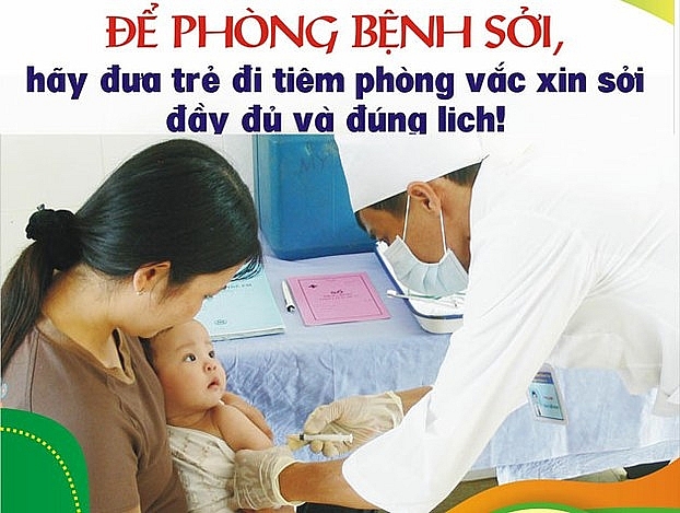 | Áp-phích kêu gọi người dân tiêm vắc xin phòng bệnh sởi |