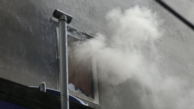 Đến 17h30, cảnh sát mới tiếp cận vào được bên trong hiện trường từ tầng 6 của quán karaoke. Khói đen liên tục bốc lên từ mái nhà và các cửa sổ.