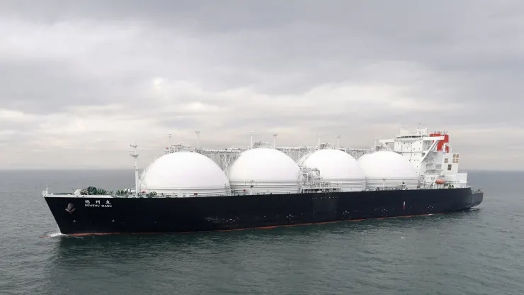 | Tàu chở LNG Sohshu Maru đi vào cảng Futtsu Thermal Power Station, ở Futtsu, tỉnh Chiba, Nhật Bản.Ảnh: Kiyoshi Ota/Bloomberg/Getty Images. |