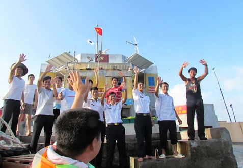 Chúng tôi xin phép chỉ huy đảo cho vài ba sĩ quan, chiến sĩ có cùng “nhã hứng” ngồi tâm sự. Đảo trưởng tâm lý bảo nhà bếp chuẩn bị nồi cháo cá bò to tướng. Giữa bốn bề sóng nước, những con người xa lạ bỗng trở nên thân tình như bằng hữu trùng phùng.
